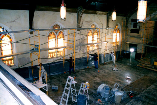 Plaster repair must be performed by an experienced craftsmen with at least 5 years experience in plaster repair and finishing. Loose plaster must be removed to provide a solid foundation for new plaster. Surface patching and skim coating cracks is not recommended. Call today to learn more on how Church Interiors, Inc. can repair and paint your church properly to ensure the best renovation or restoration results.