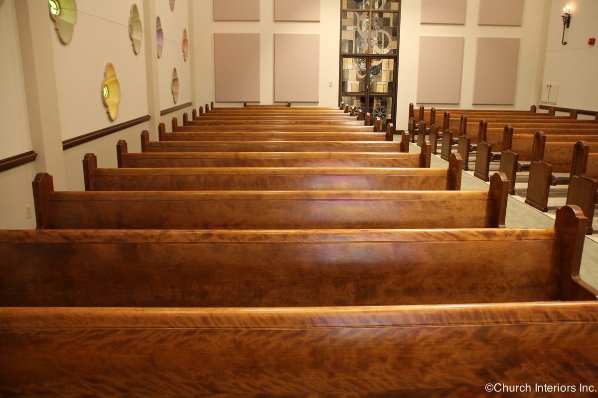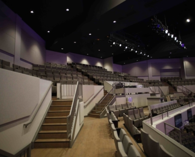 A Contemporary Southern Baptist Church located south of Atlanta, New Hope Baptist Church seats around 2500. Our team removed 144 pews from the lower level and installed 1000 new theatre seats. This raised the sanctuary’s seating capacity by almost 20%. Our team then installed 1600 square yards of carpet in the balcony and reupholstered 120 pews. New Hope BC now enjoys a radius seating configuration with improved sight lines.